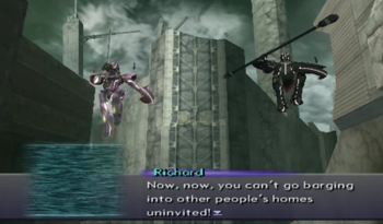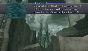 Oh, I’m sorry, it was detonated as a show of power from Richard and Hermann. Remember them? The loser duo that we beat back on the Ormus Stronghold, and then never saw again? Well, after being mentioned once in this plot, they’re back for a boss battle.