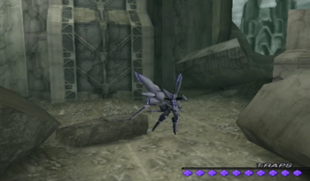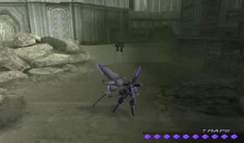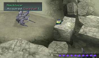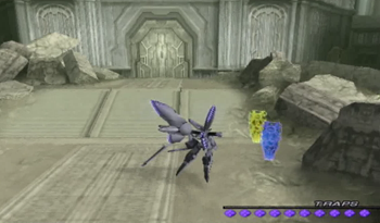 Now we’ve got a proper dungeon going with multiple paths and random monsters milling about. Like most (all?) Xenosaga dungeons, usually you just wind up with two paths, one leads to treasure of variable quality, and the other is the way forward.