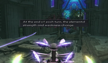 ES Dan adopts a similar defensive measure as Omega ID: after every turn, its elemental weaknesses and resistances shuffle.