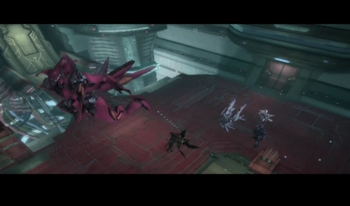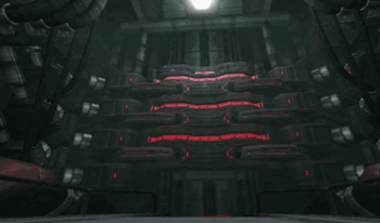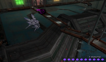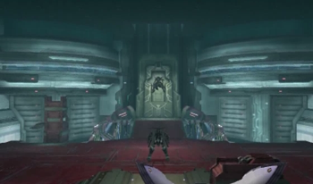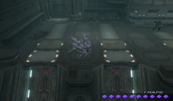 This area is meant for the ESes, but it has an on-foot segment. To account for the comparatively GIANT environment that fits the ESes, the on-foot segments of this room are all on super-fast conveyer belts. We saw a similar “cheat” on the Merkabah, and, well, at least someone is thinking about how much time in this game is wasted puttering around.