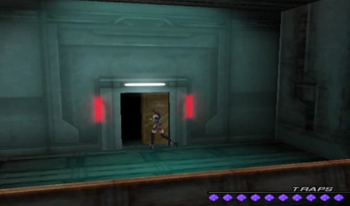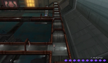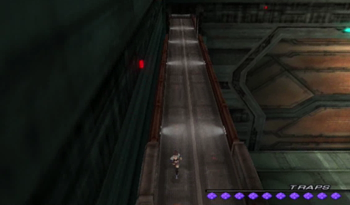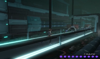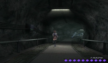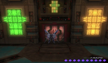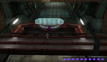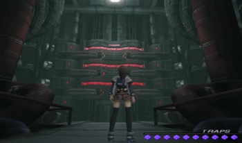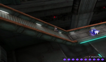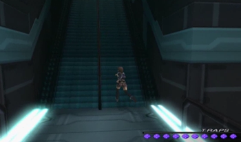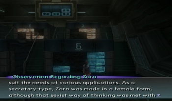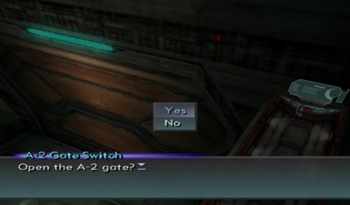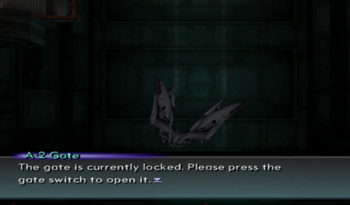 The trick here is that you have to hit a switch while zooming along at top speed on a conveyer belt. It’s fairly easy to do what you need to do, but it is one of the few Xenosaga “puzzles” that requires reflexes.