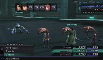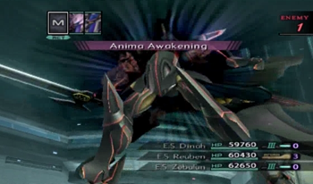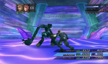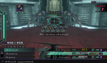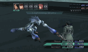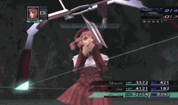 XS3 made slight improvements on the ES front. The massive Anima-fueled Special Attacks of the ESes do help the player to feel like they’re actually piloting a colossal, destructive mech. Additionally, adding in a “full” three person (‘bot) battle party and easy access to healing goes a long way to making ES fights more manageable. Unfortunately, again, ES overworld traversal is snail-speed, and the glut of monsters you’ll fight in the average ES battle (literally more monsters than you’re allowed to target) means that every trip to ES land makes the game slow down to a crawl.
