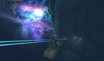 At the end of the cave area, there’s a precipice that drops off to a big, pulsing light ball. Huh. Wonder how we inevitably get down there.