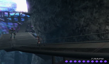 Somehow shooting the hanging pathway repairs the catwalk. Who knew the ESes were so precise?