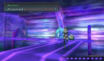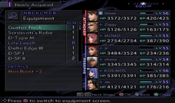 The only real point to getting up here is acquiring treasure, but at least it’s good treasure. The Life Leech is a ring accessory that adds HP drain to your attacks. Equip it on your biggest bruiser, and suddenly healing between random battles becomes a thing of the past.