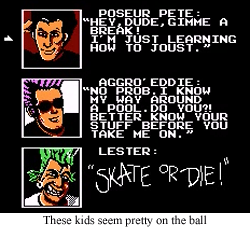 Skate or Die!, huh? I never played the original, but I did play the sequel…which goes in a pretty different direction as more of an action adventure with skateboarding. Never made it past the first level.