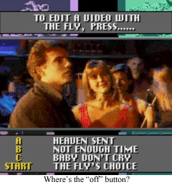 - No FX: Oh yeah, forget to mention that you can add some stupid “effects” to your music videos, like “make everything green” or “make everything fuzzy”. Actually, given the fidelity of Sega CD video, practically every effect is “make everything fuzzy”. So, uh, enjoy?