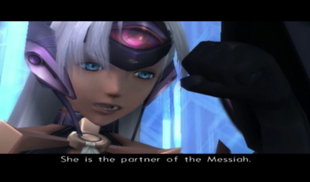 Shion, a child on Miltia, watches her parents die at the hands of berserk Realians. Shion is the Maiden of Mary Magdalene, so she’s got a subconscious link to U-DO/God. Her incredible trauma resonates with the Zohar, gets God’s attention, tears the UMN a new one, and releases the gnosis into the universe.