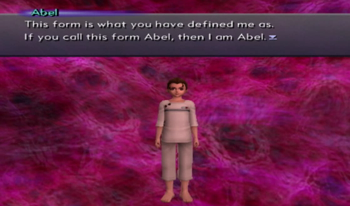 U-DO is the will of the universe, it is God, but it is also a “soul” itself. While it is made up of everyone and everything, since it has its own will, it wants to explore that will, and “be” something. Thus, Abel was “born” to be U-DO’s mortal vessel, a sort of homunculus that could experience being human and maybe pilot a giant robot or two. Abel is God, but is a sort of “go with the flow” God: he suffers through a lot of Xenosaga because he’s not asserting his own will (“hey, stop hitting me”) and mainly wants to see what humans will do. Abel experiences pain, and dislikes pain, but does nothing to stop his own pain because he wants to see where this is all going. That winds up being (almost) the end of the universe, and, since Abel is wrapped up in the event, U-DO will not interfere.