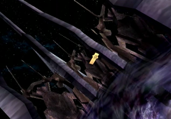 After reuniting with KOS-MOS, Shion is forced into a simulation of her own past. Shion is then made to relive her greatest anguish, and that event causes Shion to summon Abel’s Ark back into regular space.