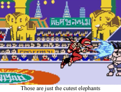 D'aww circusBut that same year, there was today’s featured game, Fatal Fury: First Contact. FF:FC is another Neo-Geo Pocket Color fighting game, and like a certain game featuring some Fatal Fury gals, it’s a pretty fun way to spend a bus ride. We’ve got thirteen fighters (only twelve available outside of versus mode), and seemingly all of the old Fatal Fury standbys in adorable chibi form. Okay, someone forgot to invite Blue Mary this time, but we’ve got Terry, Andy, Joe, Mai, Billy, Geese, Wolfgang, and Kim to make up for it. And we’ve got Rick Strowd and Li Xiangfei (who is, let’s face it, Guilty Gear’s Jam, somehow premiering at almost exactly at the same time) as “new” characters, too. It’s a fun time for fighting on a portable, and, with the exception of no “plane” battling this time, this feels unmistakably like a Fatal Fury game. Billy Kane, Geese Howard, and Wolfgang Krauser are even way too difficult to fight with the poor Neo-Geo Pocket’s analog stick, so it really earns its Fatal Fury wings there, too.