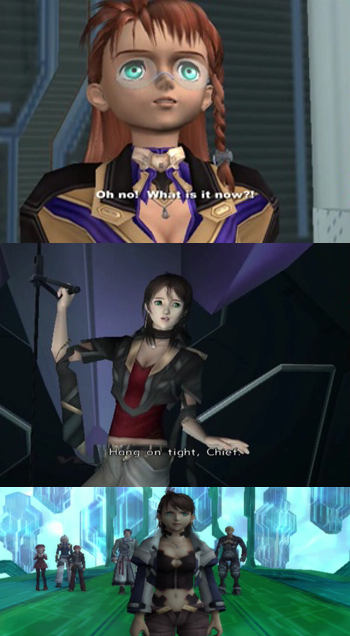 And speaking of impacting the message, I’m going to call out the graphic changes here. I particularly noticed it going through the old chapters of this LP, but Shion, KOS-MOS, and the entire cast change dramatically from game to game…