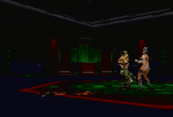 RAWRAnd, to be absolutely clear, this is not a situation wherein War Gods borrowed a few control schemes or gimmicks, but otherwise presented itself as a totally new game. As an easy example, Anubis, the Egyptian God of Getting Biz-ay, has three unique special moves: a charging ram (that somehow allows him to impale an opponent on his widdle doggy ears), a “pyramid net” that works exactly like MK3’s Cyrax’s net, and a teleporting uppercut that is straight out of Smoke’s repertoire. It’s… blatant, and makes you wonder why they didn’t just decide to release a 3-D Mortal Kombat with all the same, familiar characters. Or did they decide that Kabuki Jo would be that much better than Jade at impaling a dude on a stick and calling it a fatality?