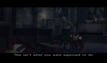 And then…. Nothing. Old Miltia is destroyed, but it’s destroyed by Pope Jerkass. KOS-MOS doesn’t even wind up in a “will she/won’t she” situation. The only choice any party member makes is Shion agreeing to kill Cecily and Cathe, and, given the tone of that scene, it kinda looked like that was going to happen without her blessing. In the end, an entire planet is destroyed, and it’s destroyed entirely thanks to the machinations of a character that has been established as evil from his first moment.