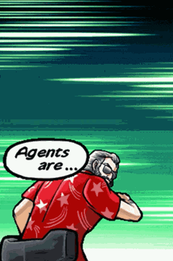 Land of the Rising Fun: The “original” version of this game/franchise would be completely unrecognizable to American audiences. For instance, rather than “cool” agents dancing to random songs, Japan has got actual cheerleaders in Osu! Tatakae! Ouendan. Male cheerleaders. I can’t imagine why someone decided to change that for localization.- Gone and maybe Forgotten: The Agents appeared as a trophy in Super Smash Bros Brawl… but not Smash 4. That makes me nervous (and maybe still stressed).