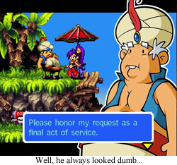 … And that’s about it. Shantae is a pretty straight-forward heroine. Rottytops is flighty, but also a generally dependable ally. Mayor Scuttlebutt is clearly a corrupt politician, but has the town’s best interest at heart.