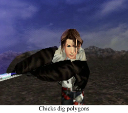 But what’s the conclusion here? Some tired tripe about women preferring well rounded characters as opposed to the men that just want roundness in other departments? I mean, I guess that’s kind of true, but, again, we’ve got crushes on silent protagonists here. Women don’t go for “beefcakes” like men go for “babes”? Again, a little too obvious. Chicks dig Nomura pretty boys? Okay, that’s a distinct possibility…