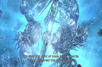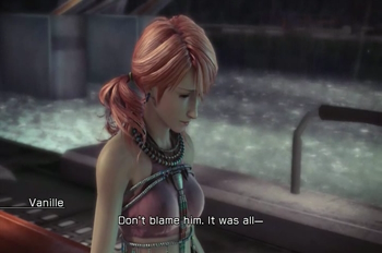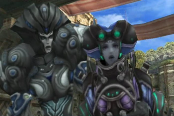 But, more than anything, Final Fantasy 13 seems a lot like Xenosaga because its best bits are not when it focuses on a mythology that requires cliff notes for its cliff notes, but when it focuses on the connections between the people in the party. The whole sprawling story of destroyed planets and ancient prophecies is cool an’ all, but the truly important part of it all are the bonds within the party, and how two women wind up saving everyone through their love.