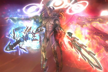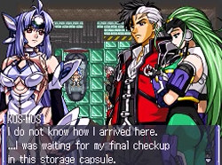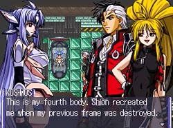 KOS-MOS, Shion, and MOMO are teleported to X-World (or whatever it’s called). KOS-MOS hilberts the gnosis, and the first official level begins.