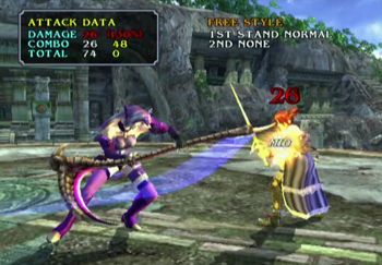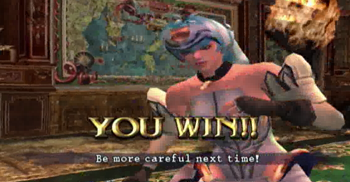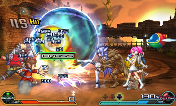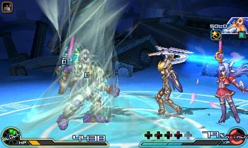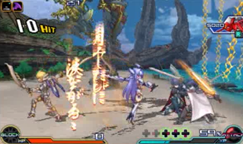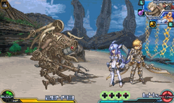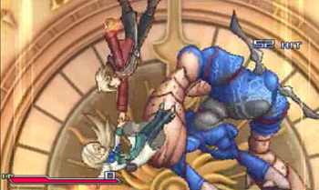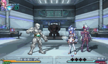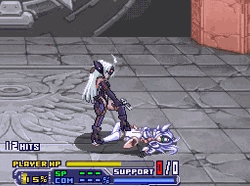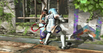 And here’s the Fiora/KOS-MOS special attack. Note that it winds up being an X-strike. Cute.