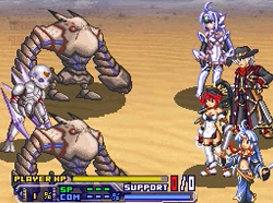Anyway, the game itself is kind of a bummer. It’s a TRPG with pretty basic (re:boring) mechanics, and the main appeal of the game is that OMG Mega Man can fight against M. Bison and then Dig Dug can high five Klonoa. Unfortunately, the minute to minute of the gameplay is boring as hell.