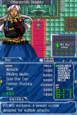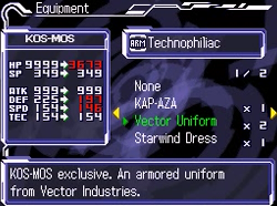 Speaking of borrowing, KOS-MOS’s unique equipment is a bevy of easter eggs for Xenosaga fans. You can’t actually see any of this gear, but here’s Shion’s arm thingy for sale.