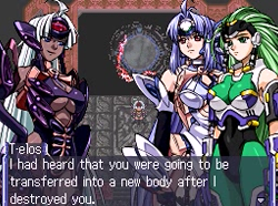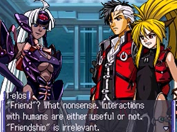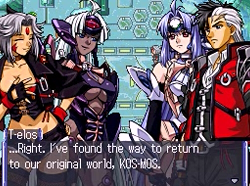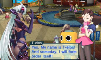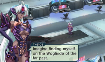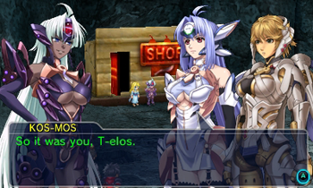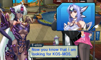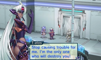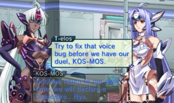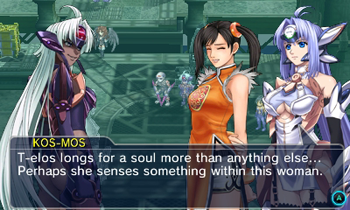 And T-elos is slightly more transparent about her intentions and disdain for KOS-MOS.