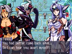 T-elos isn’t all that important to main “plot” of Project X Zone 2, so, during one of the later stages, she just decides to up and leave. Good-bye forever, T-elos!