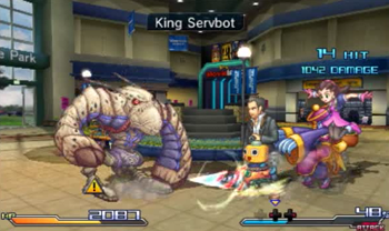 This was probably established in the previous Namco X game, but apparently all the “crossover” universes are kind of smooshed together by date, so Tron Bonne and Mega Man Dash are contemporaries of Captain Commando and KOS-MOS. Obviously, this is completely insane, as Captain Commando takes place in the future of Metro City of Final Fight, which is on Earth, and Earth cannot be accessible in the Xenosaga mythology and oh God what has my life become?