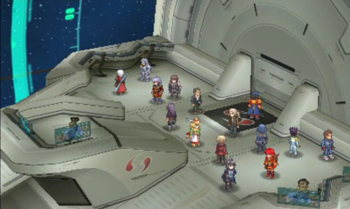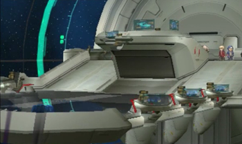 After seventeen stages or so, the cast eventually finds their way to the Woglinde. The whole “theme” of this game is that places and people are coming back from the dead, so the good ol’ Woglinde seems like a fine representative for “places in Xenosaga that no longer exist”. Another option could have been everywhere the Brews have ever been.
