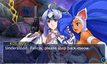 KOS-MOS appears! Fox Girl actually recognizes our favorite android from Namco X Capcom.