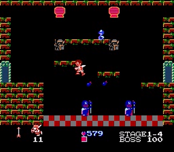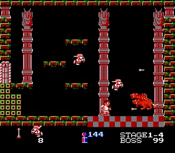 Also there’s ending differences, too. The NES (and 3DS) version lost the worst ending (Pit gets turned into one of those Groucho buttheads) but gained a new best ending, a background for the endings, and a credits scroll.