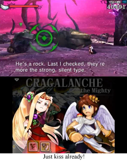 With the exception of Medusa, it seems like every heavenly being of the female variety could double as Pit’s “playful” older sister. Actually, to put a point on it, Palutena is the older sister, and the rest of the women are her cool friends that jokingly flirt and tease the dweeby Pit. Or maybe it’s just the spirit of fanfic coming upon me again. Could go either way.