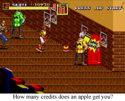 What’s in a name: The arcade machines glimpsed in Level 3 are for a game called “Bare Knuckle”. Ha! What nitwit would play a game called Bare Knuckle?- Favorite character: Normally Blaze would be my go-to, as I (almost) always favor the “faster” character in beat ‘em ups. But, in this case, I’m going to go with Skate. He’s faster than Blaze and he’s the only character with a proper dash attack. Considering the dash is my preferred attack in any BEU, that’s kind of deal sealer. Guess I do always go with the quickest choice.