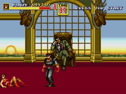 It’s the subtlest little change, but it means so much to the game. The first boss in Streets of Rage 2 does not, at any point, retreat and force you to fight some random thugs while he eats a hamburger. The fourth boss does not have seventeen lifebars. Heck, the second boss brought a damn jetpack to the fight, but his HP is scaled to account for the fact that he can’t be hit all the time. He barely has more life than Symbol Y! It’s like Streets of Rage 2 actually respects the player’s time, and accounts for “this boss has three main patterns, he doesn’t have to be fought for the next ten minutes”. The average Streets of Rage 2 boss goes down in about as much time as a Robot Master, and that’s phenomenal! I might finish this game before I run out of imaginary, arbitrarily assigned credits because this is a console game, dammit! Somebody finally acknowledged that simple fact!