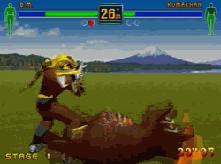 Bearly Moving: Fighters Megamix wasn’t Kumachan’s first rodeo, he debuted in the Saturn port of Fighting Vipers as an unlockable. If you had the Japanese Fighting Vipers you could have him fight Pepsiman!