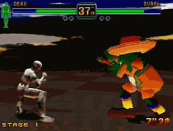 And, finally, we have Deku, a green bean in a sombrero. Deku is not to be confused with Amingo, a cactus in a sombrero that would eventually appear in Marvel vs. Capcom 2. These are two totally separate characters, and “two fighting game crossovers featuring a bizarre Mexican stereotype” is just the kind of coincidence that happens when companies make fighting games for a decade or so. It was bound to happen.