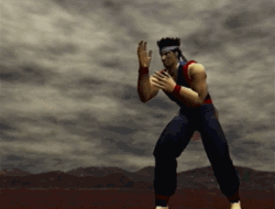And it’s weirdness all the way down, too. Siba seems like the most mundane hidden character, but his existence is owed to being deliberately cut content from the original Virtua Fighter, so he’s basically a playable piece of trivia. Then there’s Janet from Virtua Cop, and, even though she doesn’t get a “kick ‘em square in the bean machine” finisher from Dynamite Cop, she’s obviously a million times more interesting than the entire Virtua Fighter cast. That brings us to Rent-A-Hero, who hails from a franchise that has never made it out of Japan, mainly because it seems to be a humongous parody of sentai shows. So, basically, he’s a Power Ranger with the noticeable handicap of being battery-powered, so… uh… don’t take him into any matches that might take longer than a minute. And that luminary is our last human hidden character.