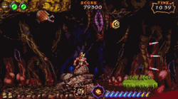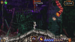 WeeeeeeeAnd, technically, there’s a lot about UGnG that should impress me. It’s “old school” action, but now with a bit of a Metroidvania twist. Arthur acquires new skills as he goes, so stuff like the sublime double jump of Super is obtained (permanently!) like any other powerup. And the game design actually accounts for this! There are places that are inaccessible until you find the right power, and then, bam, you can return and find all new treasure and routes. Finally there’s a reason to replay a GnG level other than “because the princess said so”. And, assuming you’re playing on the “standard” difficulty level, the whole “Arthur is fragile” thing is greatly mitigated by armor HP. No more do you have to worry about nabbing that sweet golden armor and losing it a second later to a damn imp and his teeny tiny balls (erm… deadly balls? There’s… just no good way to phrase this). Arthur is large and in charge, and, complete with instant respawning and save points, this might be the most conquerable of GnG games.