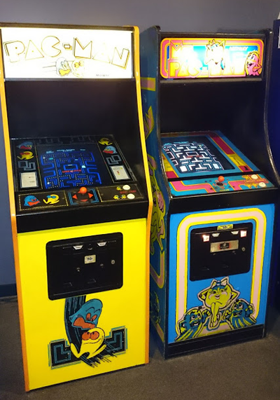 According to Pokémon Go (this is how I do research), the local arcade was founded in 1976. Pac-Man, according to Wikipedia, was released in the spring of 1980. Given my grandfather notoriously enjoyed Space Invaders since its initial release two years earlier, I’m guessing the man first played Pac-Man in that arcade. Here, for reference, are the two “original” Pac machines still floating around that arcade, nearly forty years later: