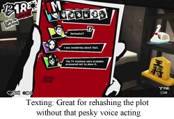 Not that I have much interest in actually playing Persona 5 myself, though. It’s nice this one hired an actual dungeon designer, but between the verbose dialogue, high school setting, timer, and anime skeev, I’ve largely come to accept that the new Persona games just ain’t for me. An oppressive atmosphere (Oh boy! Just what I want AT SCHOOL!) and PS SHARE embargo ain’t exactly gonna win me over, either.