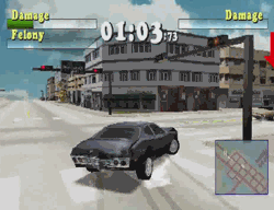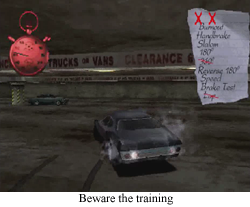 Speaking of the po-po, there is a plot here. There’s a “story mode”, and it similarly showcases the times. Rather than going full criminal like every GTA descendant, you’re a police officer that just happens to be undercover as a nefarious wheelman. Eventually the FBI or CIA or FDA or somebody screws up, and you’re stuck on the wrong side of the law, and…. You know what? It doesn’t matter. No one is going to play through the story mode, because it’s attached to an opening “qualifying” stage that is completely impossible. But there is a trick to it! You have to exit the game, completely lose your progress (which, admittedly, was just watching one cinema scene… but still!), hop over to the “Training” menu, then learn all the super cool moves (like, uh, holding down the gas pedal really long), remember all the super cool moves, and then completely restart your game. It’s that easy!