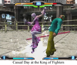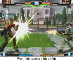 Yeah, KoF 2K6 may have been a flop with the fans, but more fighting games could use a mode that lets you go head-to-head against a moving tank or steamroller.
