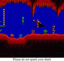 This is some “intern’s first day” pixel work going on here, and I’m pretty sure someone noticed, as this shark shoots toilets at its enemies. That can’t be a coincidence, right? That it is trash shooting literal garbage and bathroom equipment? Someone on the staff knew they were looking at crap, and planned accordingly.