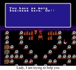 • System: Nintendo Entertainment System. I reserve the right to “review” any other releases, such as the Playstation Origins, the GBA Advanced, or the PSP whatever the hell was happening there. That was the worst “bonus” dungeon I have ever seen.