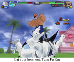 As one might expect, I was kind of burned out by the release of DBZBT3. If memory serves, I didn’t even buy this game when it was remotely new, and simply fished it out of a clearance aisle somewhere in my travels. After years of other shallow DBZ games, I’m pretty sure I gave it a precursory play, enjoyed a few versus matches with the AI, and gave it up forever. I’m almost certain I didn’t play the game with another human even once, which, for a DBZ fighting game, is fairly damning. Sure, this title has more characters than any fighting game ever, but they’re all the same. And when you’ve got “Unnamed Frieza Henchman” on the roster, you’re scraping the bottom of the barrel (a barrel that, incidentally, once contained giant monkeys).
