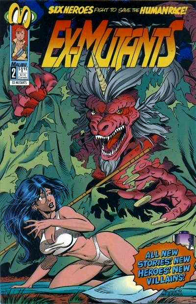 At this point, I’d like to describe the Malibu Ex-Mutants series for you… but, for some reason, there is a dearth of information available on the net regarding that particular failed franchise. Basically, every description of Ex-Mutants I can find is focused exclusively on the original series, and I guess nobody cares about the Malibu incarnation. This… may be for the best. From what I can tell, Malibu Ex-Mutants was much more of a dedicated X-Men/Gen 13 affair, and featured an even division of men and women. But don’t worry, Ex-Mutants did remember its roots, as the cover of issue 2 was already leaning pretty heavily into the cheesecake…
