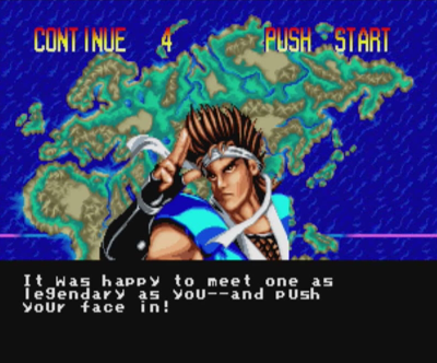 I’ve always said that a fighting game lives or dies by its roster. Street Fighter knows the score on this one, and it’s also the flawless reason that Tekken keeps adding magical idols and hulking robots to its cast. On the other side of the coin you have the likes of Virtua Fighter, which is an excellent game fundamentally, but contains a roster so boring I’m struggling to stay awake to finish this sentence. World Heroes is firmly in the Street Fighter camp (up to and including Ken and Ryu “but ninjas!” as the main characters), and, while there are a few duds (hello, Bruce Lee Clone #261), this is a game that absolutely plumbs the depths of history to produce an interesting roster. Rasputin the mad (and loving) monk! Ganghis Kahn! And, yes, even a precursor to Fate/Stay Night’s blonde swordswoman, an expy of Joan of Arc named Jane. All the numbers have been filed off these “famous” fighters (which explains how Hulk Hogan snuck into the ring), but it’s pretty clear that the “C” in “C. Kidd” doesn’t stand for “Carl”.