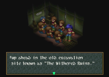 You leave your ruins to rot, you’re gonna get monsters. The first couple of rooms in the Withered Ruins are monster-less, and you’ve just got a bunch of NPCs milling about that provide tutorial tips. Note, again, that nothing like this exists in the other two introductory segments.