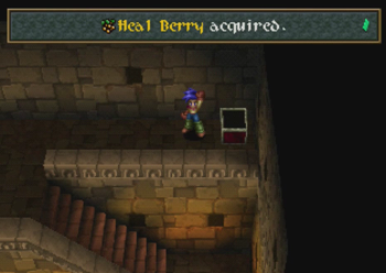 Exploring the dungeon while not falling into a hole like a big idiot yields some more random treasures that shouldn’t exist. Who puts a berry in a box in a dungeon?